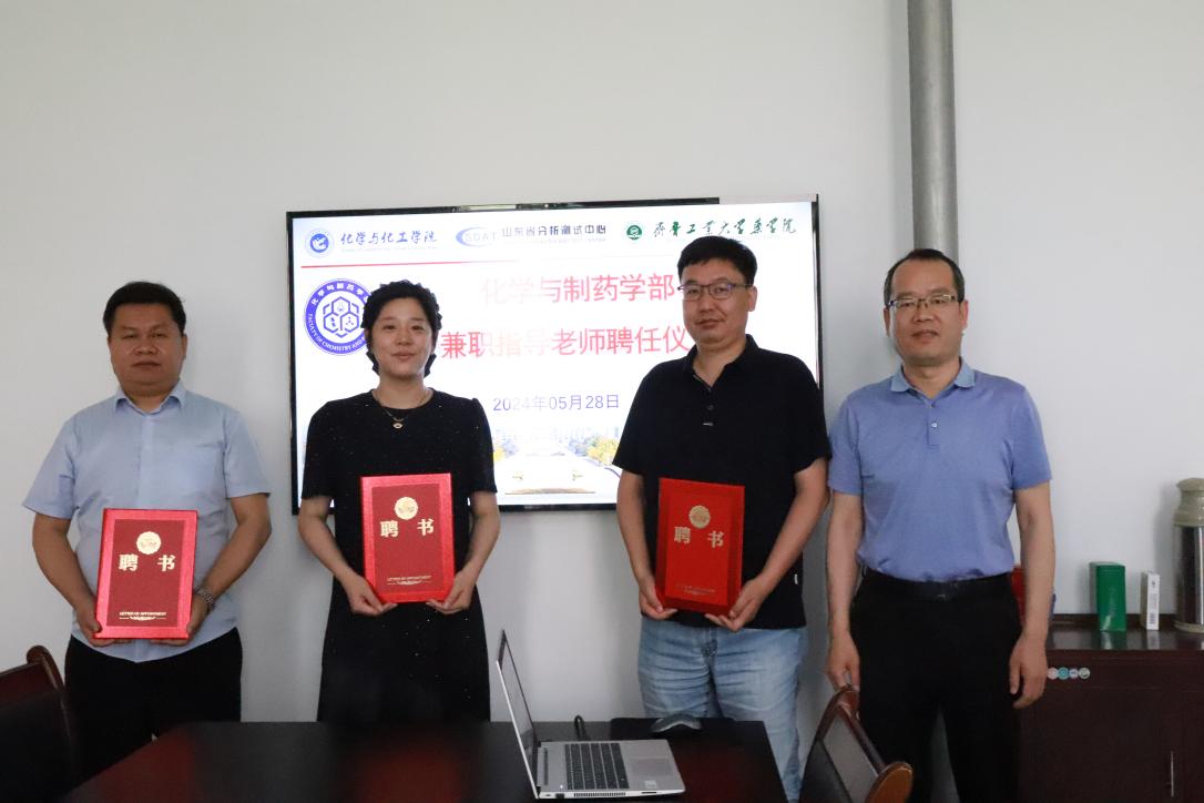 經(jīng)公司推薦,齊魯工業(yè)大學(xué)(山東省科學(xué)院)化學(xué)與制藥學(xué)部考察,我單位蔣姝慧、唐桂文、劉強(qiáng)、劉玉成、孫永軍于2024年5月被聘為齊魯工業(yè)大學(xué)(山東省科學(xué)院)化學(xué)與制藥學(xué)部兼職指導(dǎo)老師,聘期三年,齊魯工業(yè)大學(xué)(山東省科學(xué)院)化學(xué)與制藥學(xué)部書(shū)記尚明、副主任姜海輝、董成穩(wěn)、王金桂、我公司人力資源部和研發(fā)中心出席了聘任儀式。